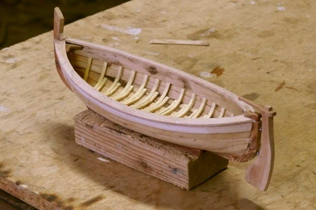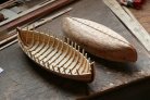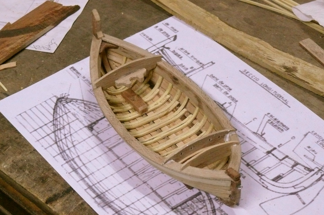 En su construcción a escala 1/20 he utilizado un molde realizado previamente y el proceso se detalla en las fotografías. Las maderas que utilizo son todas de recuperación (normal en mi) de la poda de frutales. La motoneria, cabos y velas tambien son artesanales ...falta aparejarle la vela latina y otros elementos que incluiré en próximos días.