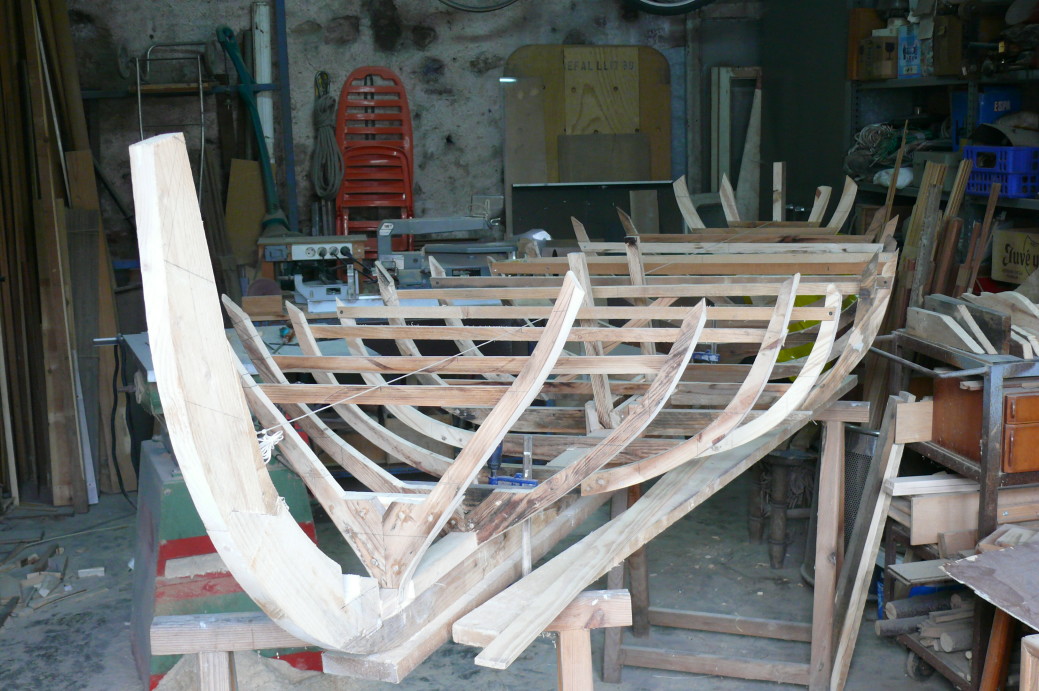Lo cierto es que me ha servido para trabajar la madera a dimensiones reales y ver con claridad las soluciones que los verdaderos “mestre d´aixa” aplicaban en la construcción para dar esa resistencia estructural tan notable de la que hacen gala los gussis. Yo he reducido grosores al mínimo aconsejable para reducir el peso muerto del casco así como (no disparen todabía por favor) sustituir el forro del casco de madera por listones longitudinales y una “piel” a base de maya de fibra y resina. Incluso le puse una capa de fibra de las utilizadas en la construcción.
