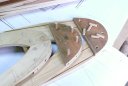 Cuando la estructura ya estaba montada vino el desastre, me convenció para inyectarle espuma de poliestireno (tal era su pánico al hundimiento) bien, así lo hice y no vea el resultado. El poliestireno tarda varios días en fraguar, a pesar de que las instrucciones digan lo contario y, con el calor, cada día te encuentras "nuevas barrigas" que tienes que eliminara golpe de cutter y lija gruesa y al día siguiente, mas de lo mismo, todo esto a pesar de mis advertencias.